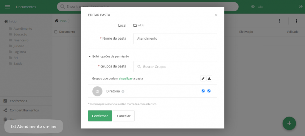 A configuração incorreta de um grupo poderá liberar documentos e pastas para algum usuário que não tem permissão para visualizar o mesmo.